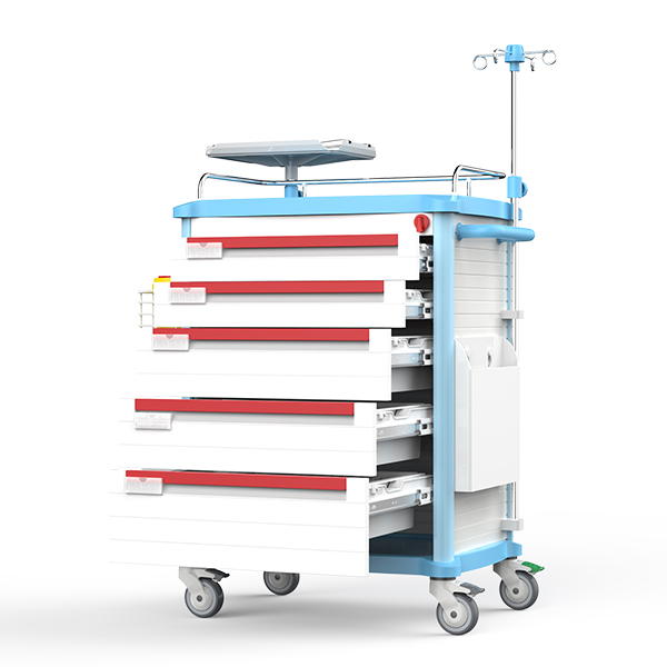 2. ABS rescue trolley tabletop is equipped with 12.7 mm (diameter) stainless steel fence, no fingerprints.