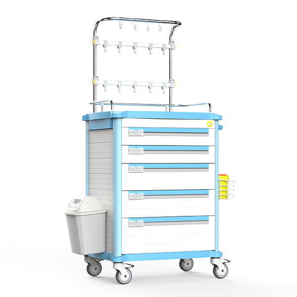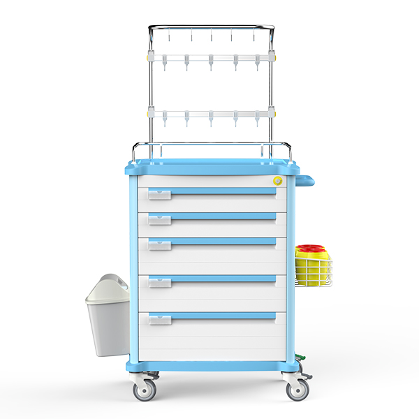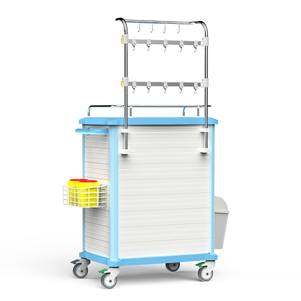 6. Strong NIMBLE system supports stainless steel infusion rack whole row lift increase or decrease, ABS infusion hook according to the use of the situation can be increased or decreased, and there is a logo trolley slot for easy identification.