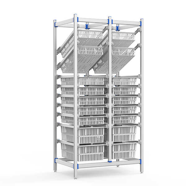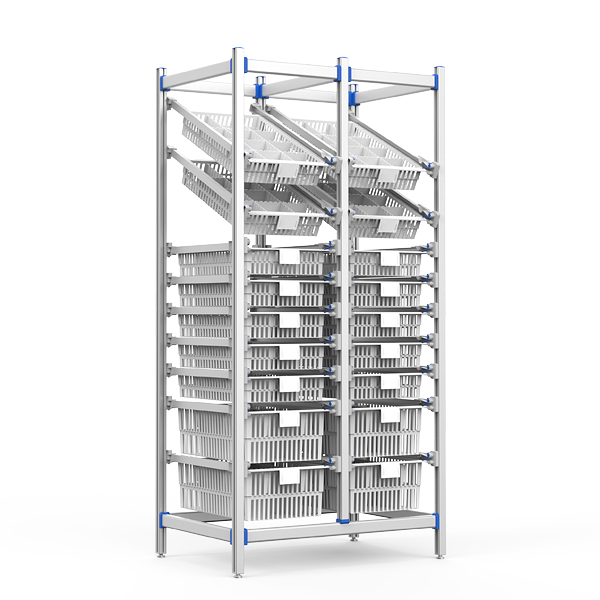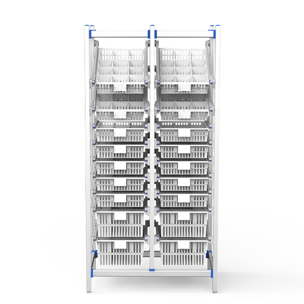 Optimized for hospital pharmacies, supply rooms, and medical logistics centers. Dual-tilt baskets enable quick item visibility, while modular design maximizes storage density. Stable on uneven floors for high-traffic clinical environments.