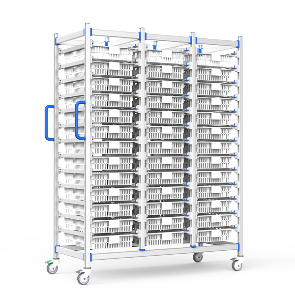 Optimized for central supply rooms and large medical facilities requiring high-capacity storage. Enables quiet transport of bulk surgical supplies and medications across corridors. Anti-vibration design ensures stability on long-distance transfers.