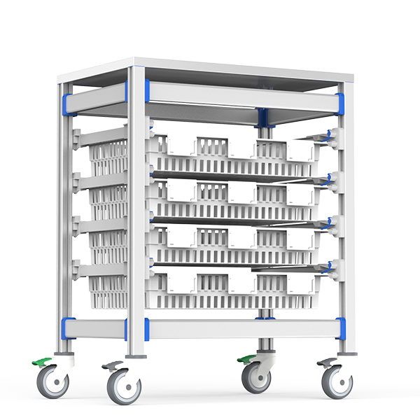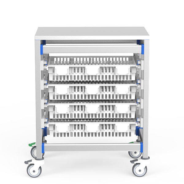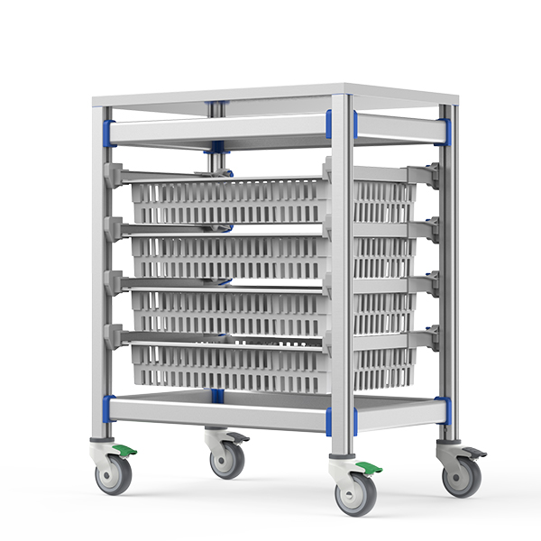 Designed for central sterile supply departments and busy wards requiring durable mobile storage. The stainless steel surface withstands frequent disinfection, while modular baskets organize instruments, medications, and disposables efficiently in compact spaces.