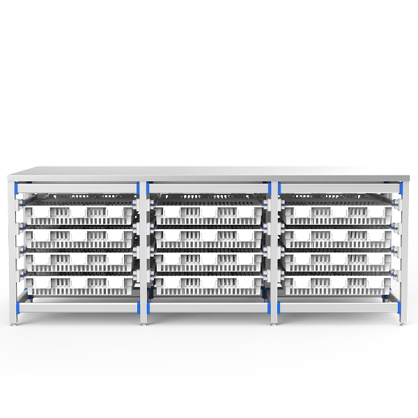 Designed for central sterile supply and surgical prep areas requiring bulk instrument packaging. Combines high-capacity storage with ergonomic access, supporting efficient tray assembly and medication sorting while maintaining clinical hygiene standards.