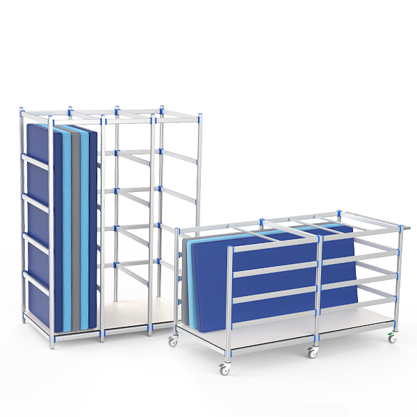 Suitable for storage rooms, ward supply areas, and cleaning/disinfection zones. Enables vertical storage, efficient retrieval,and integration with mattress trolleys for full-cycle logistics.