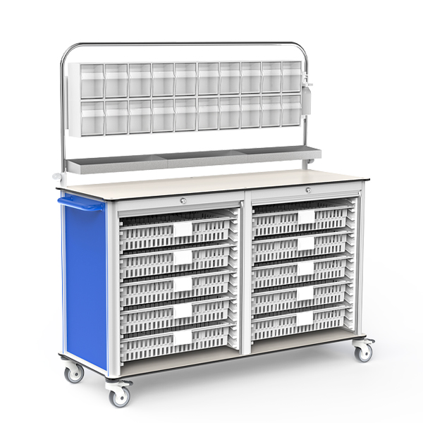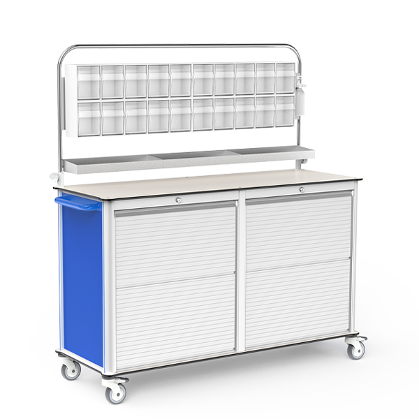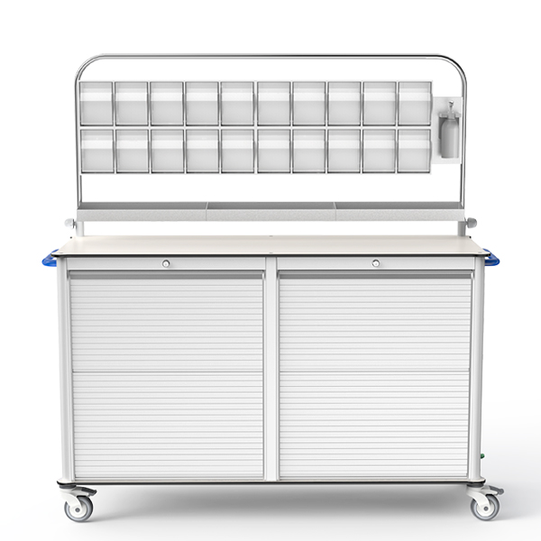 High-strength aluminum frame with HPL countertop ensures stability and lightweight performance. Modular baskets and multi-rail system allow flexible configuration for medicines.ABS rolling shutter with multi-level locks secures supplies.ISO quality system and CE certification guarantee safety and reliability.