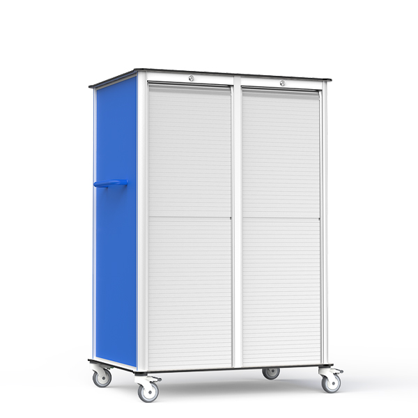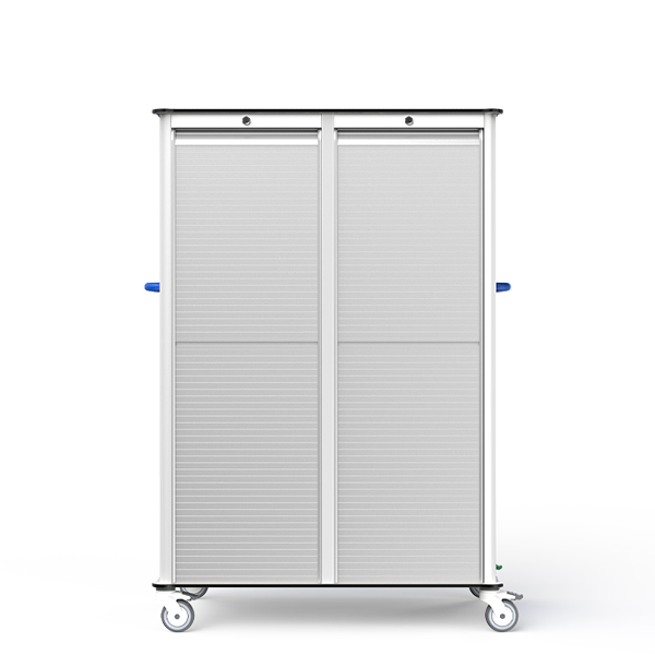 High-strength anodized aluminum frame with 8mm HPL countertop ensures rigidity, corrosion resistance, and hygiene compliance.Dual ABS roller shutters with locks provide secure dust-free storage.ISO 600×400mm modular baskets with adjustable tiers enable flexible organization. Ergonomic handles and φ100mm silent casters allow smooth mobility. ISO quality system and CE certification ensure safety.