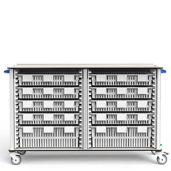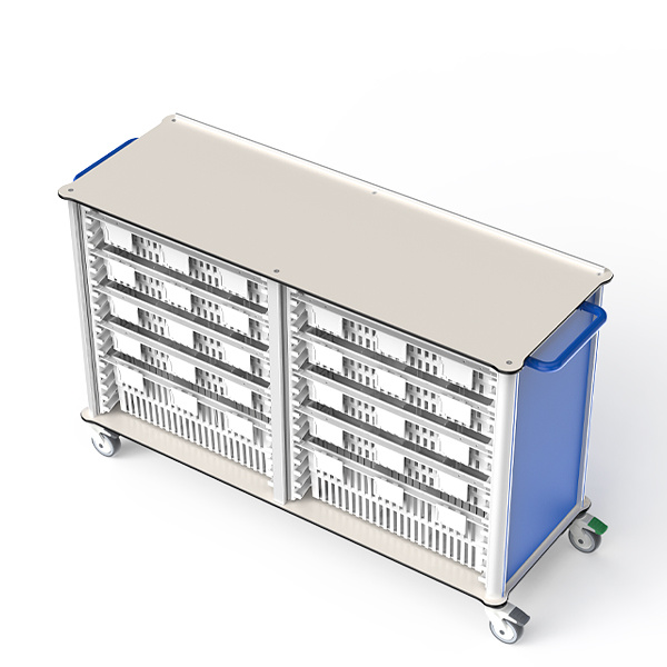 High-strength aluminum frame with dual-layer HPL countertops ensures lightweight stability and durability. Dual-column modular layout allows intuitive access to medicines and consumables. ISO-standard baskets and adjustable dividers provide organized storage. Silent casters and ergonomic handles support smooth mobility. ISO quality system and CE certification.